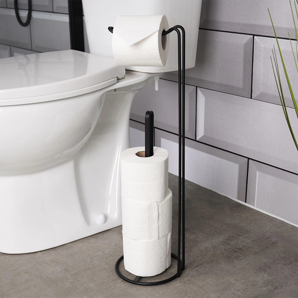 A függőleges oszlop több tartalék gurigát is elfér, így a WC‑papír nem fogy ki, és minden egy helyen marad.