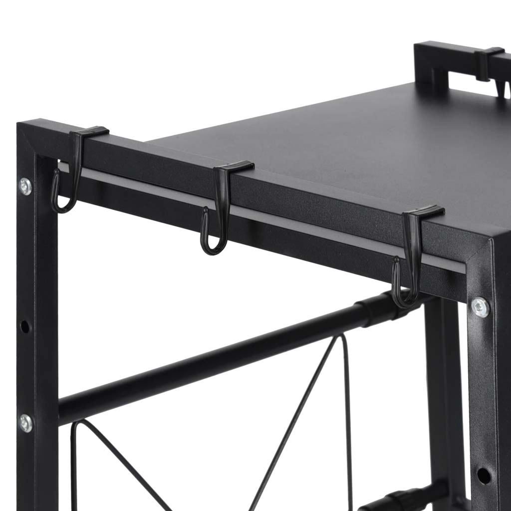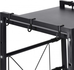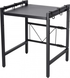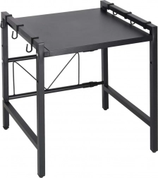 A csomag mindent tartalmaz a gyors összeszereléshez, beleértve 6 kampót törlőknek vagy eszközöknek és állítható lábakat a stabilitásért. Behúzott szélességnél a polc akár 30 kg teherbírással rendelkezik, megbízható alátámasztást nyújtva kisebb készülékeknek és nehezebb edényeknek is.