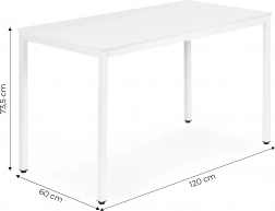 Univerzális asztal étkezőbe, konyhába és home office-ba. Tágas, 120 × 60 cm-es lapot, stabil fém szerkezetet, strapabíró, melaminnal bevont MDF felületet és csúszásgátló lábakat kínál. Kiváló választás 4–5 fő számára, terhelhetősége 100 kg, modern dizájnja pedig bármely enteriőrbe illik.