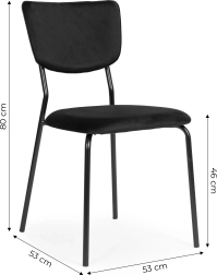 Emelje a belső tér színvonalát az elegancia és funkcionalitás kombinációjával. A fekete bársony ModernHome székek modern és klasszikus környezetbe egyaránt illenek – az étkezőtől a nappalin át egészen az irodáig vagy kávézóig. A puha ülőfelület minőségi töltettel és az ergonomikus háttámla mindennapos használat mellett is kényelmet nyújt.