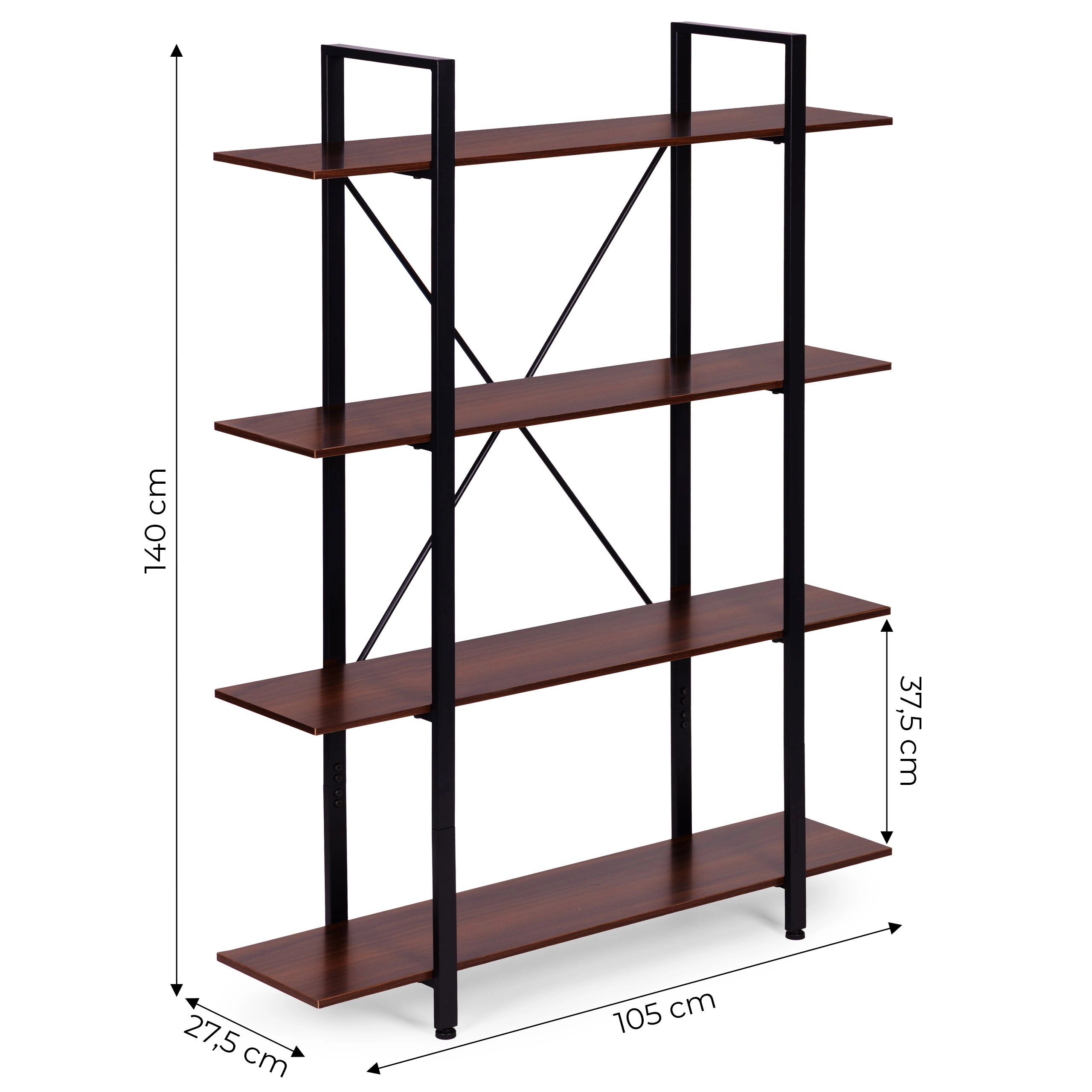 A masszív acél váz és a hátoldali keresztmerevítés növeli a merevséget és a biztonságot a mindennapi használat során – ideális könyvekhez és nehezebb dekorációkhoz is.