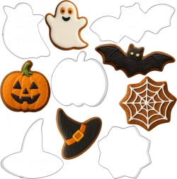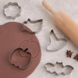 Ezzel a halloweeni kiszúrókészlettel tökéletesen formázott kekszeket és mézeskalácsot készíthet szellem, tök, denevér, boszorkánysapka és csillag motívumokkal. Az éles, vékony rozsdamentes acélélek pontos és tiszta vágást biztosítanak, így a tészta nem deformálódik, és a formák a mázas díszítés után is jól érvényesülnek.