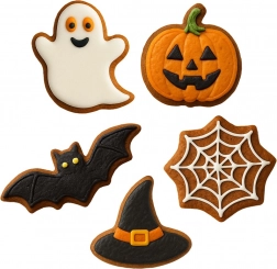 Szellem, tök, denevér, boszorkánysapka és csillag – a változatos motívumkészlet egyedi megjelenést ad sütijeinek ősztől egészen Halloweenig.