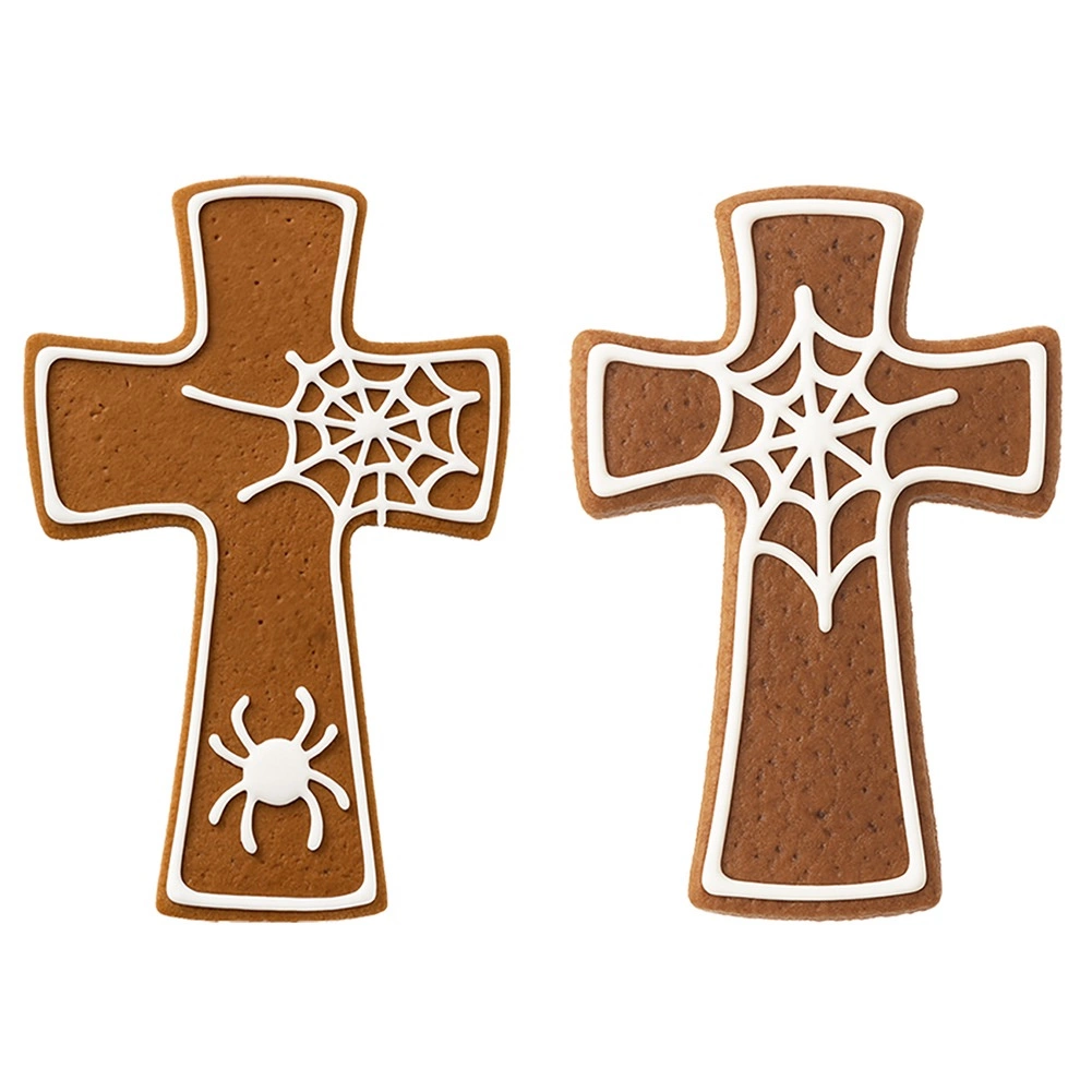 Fedezze fel a sokoldalú, kereszt alakú kiszúrót, amellyel gyönyörű mézeskalácsokat, kekszeket és fondant díszeket készíthet tortákhoz. A rozsdamentes acél hosszú élettartamot, sima vágást és egyszerű karbantartást biztosít – csak tegye a mosogatógépbe.