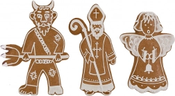 Angyal, ördög és Szent Miklós a játékos, tematikus sütéshez az advent idején.