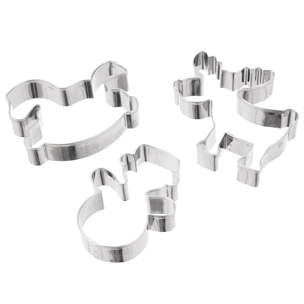 Praktikus, háromdarabos rozsdamentes acél kiszúrókészlet hóember, hintaló és rénszarvas formában a karácsonyi aprósütemények és mézeskalácsok könnyű sütéséhez. A minőségi rozsdamentes acélból készült, masszív kialakításnak köszönhetően a kiszúrók tartósak, könnyen tisztíthatók és mosogatógépben is elmoshatók. Készítsen gyönyörű formákat kekszekhez, mézeskalácshoz és fondant díszekhez, és élvezze az ünnepi sütést a precíz kivágásokkal, a sokoldalú felhasználással és a hosszú élettartammal.
