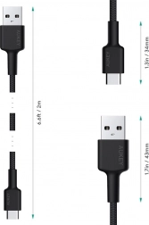 - AUKEY CB-CA2 Black kábel, tépőzár/pánt