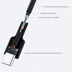 A nejlonszövet borítású kábel kiemelkedő rugalmasságot és megtöréssel szembeni ellenállást kínál. A 2 méteres hossz kényelmes használatot nyújt otthon, irodában és utazás közben is. Az OEM kivitel egyszerű csomagolásban érkezik, a kábel összefogásához praktikus tépozárral.