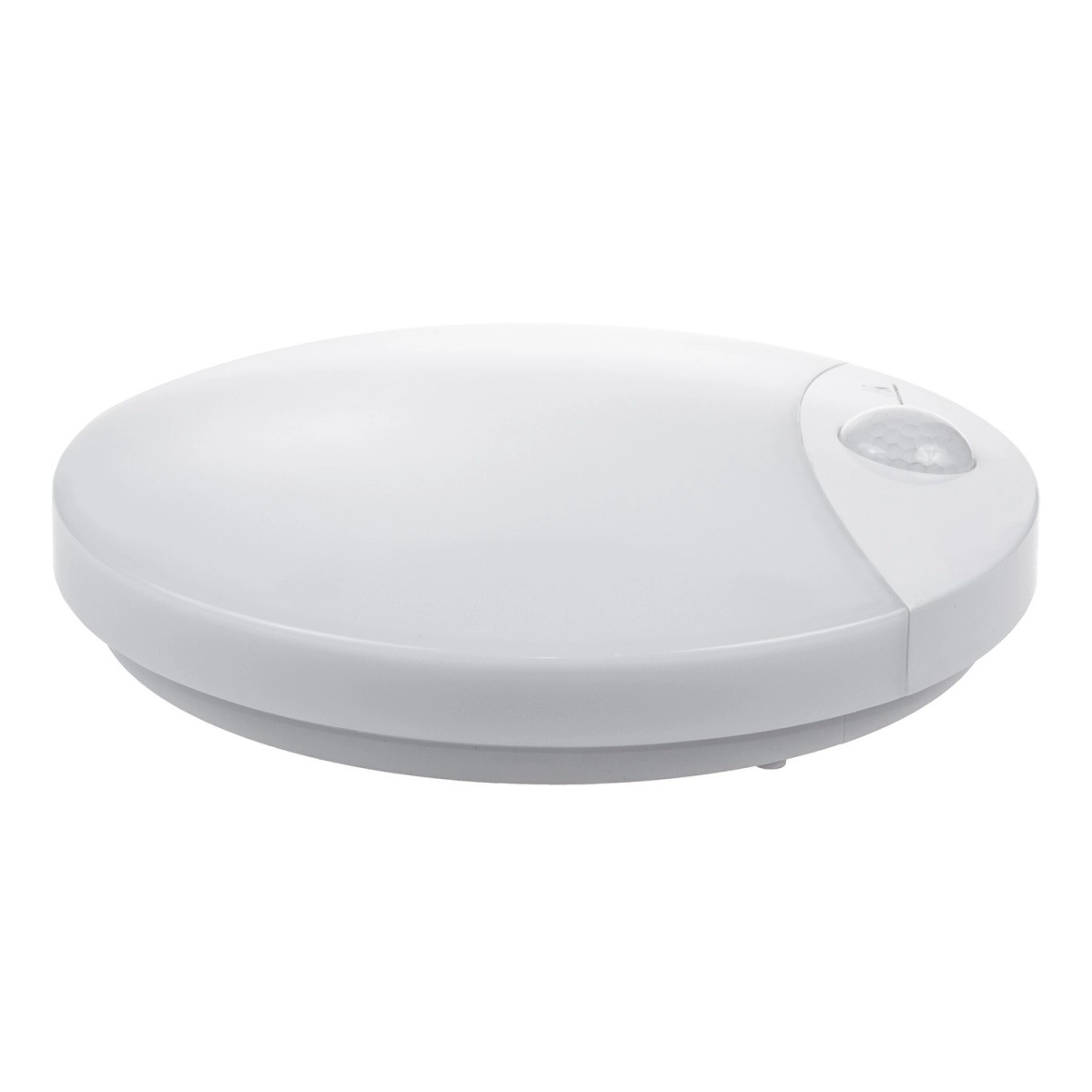 Kompakt mennyezeti/fali LED lámpatest integrált PIR érzékelővel, amely automatikus felkapcsolást biztosít mozgás esetén, takarékos 10 W teljesítményt, kb. 900–950 lm fényáramot és semleges fehér, 4000 K fényt kínál. A IP44 védettségnek köszönhetően ideális folyosókra, lépcsőházakba és bejárati terekbe.