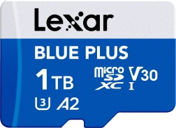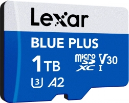 A Lexar Blue Plus 1 TB microSD kártya ideális választás mindenkinek, aki megbízható és gyors tárhelyet keres okostelefonhoz, akciókamerához, drónhoz, fényképezőgéphez vagy Nintendo Switch-hez. Akár 170 MB/s olvasási sebességének köszönhetően kiváló a nagy fájlok gyors átviteléhez, míg a U3 és V30 osztály stabil 4K UHD videórögzítést garantál kihagyások nélkül.