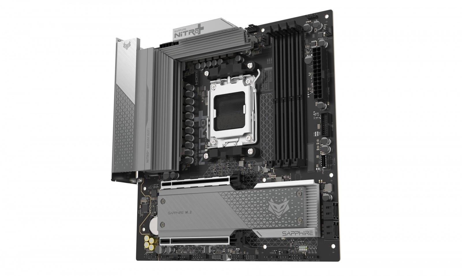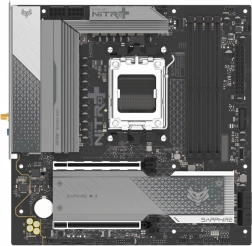 A SAPPHIRE NITRO+ B850M WIFI alaplap AMD AM5 foglalathoz stabil tápellátást, csúcsszintű hűtést és modern felszereltséget kínál kompakt mATX összeállításokhoz. Támogatja a nagy órajelű DDR5-öt, a grafikus kártyához és SSD-hez a PCIe 5.0-t, integrált Wi‑Fi-t, valamint praktikus Debug LED-et az egyszerű finomhangoláshoz.