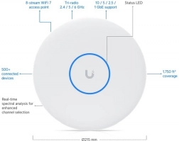 Élvezze a legújabb vezeték nélküli hálózati szabványt a Wi‑Fi 7 U7 Pro XGS hozzáférési ponttal. A 8 térbeli adatfolyamnak, a több eszköz hatékony kezelésének és az optimalizált jelformálásnak köszönhetően csúcs teljesítményt nyújt sűrűn terhelt környezetekben. A modern, kör alakú dizájn állapotjelző LED-del bármely belső térbe illeszkedik.