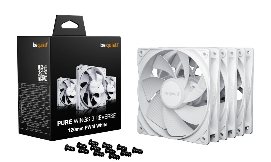 A Pure Wings 3 120 mm PWM Reverse ventilátorokat úgy tervezték, hogy optimalizált légáramot és nyomást biztosítsanak ott, ahol a legnagyobb szükség van rá – az oldalsó és alsó beömlőknél. A hét fordított, aerodinamikus lapát ideális dőlésszöggel hatékonyan küzdi le a szűrők és rácsok ellenállását, miközben minimális zajszintet tart fenn.