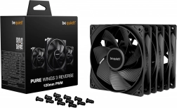 A Pure Wings 3 120 mm PWM Reverse ventilátorok kiváló arányt kínálnak a hűtési teljesítmény és az alacsony zajszint között. A hét, aerodinamikailag optimalizált és fordított lapát jelentős légáramot biztosít, miközben csökkenti a turbulenciát. A PWM támogatásnak köszönhetően a fordulatszámot pontosan a rendszer hőmérsékletéhez igazíthatja.