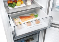 A friss élelmiszereknek kialakított rekeszeknek és a fagyasztó három fiókjának köszönhetően minden kéznél van, és gyorsan megtalálja, amire szüksége van. A csendes működés és a könnyen tisztítható anyagok gondtalan használatot biztosítanak a mindennapokban.