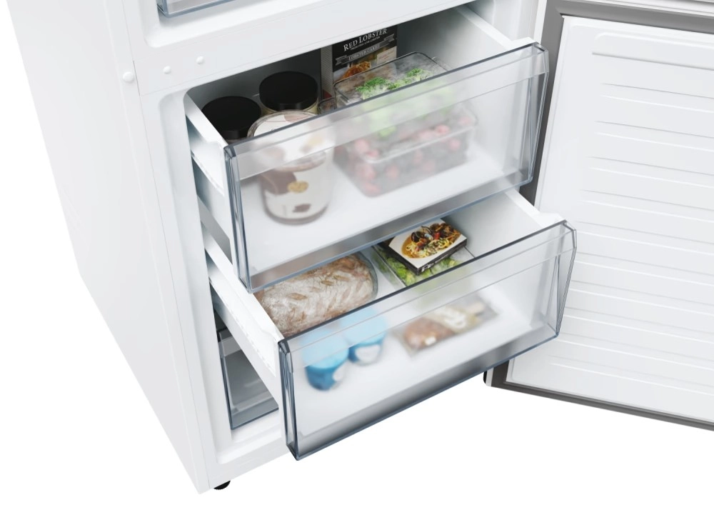 A fagyasztó három tágas, átlátszó fiókja gyors eligazodást tesz lehetővé, és a nagyobb csomagok tárolását is megkönnyíti felesleges keresgélés nélkül.