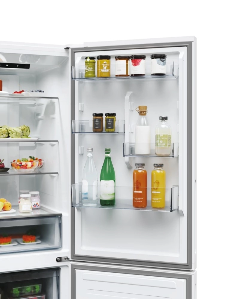 Az üvegpolcokat és az ajtórekeszeket könnyedén az aktuális igényeihez igazíthatja. Mindennek megvan a helye, és jól látható marad.