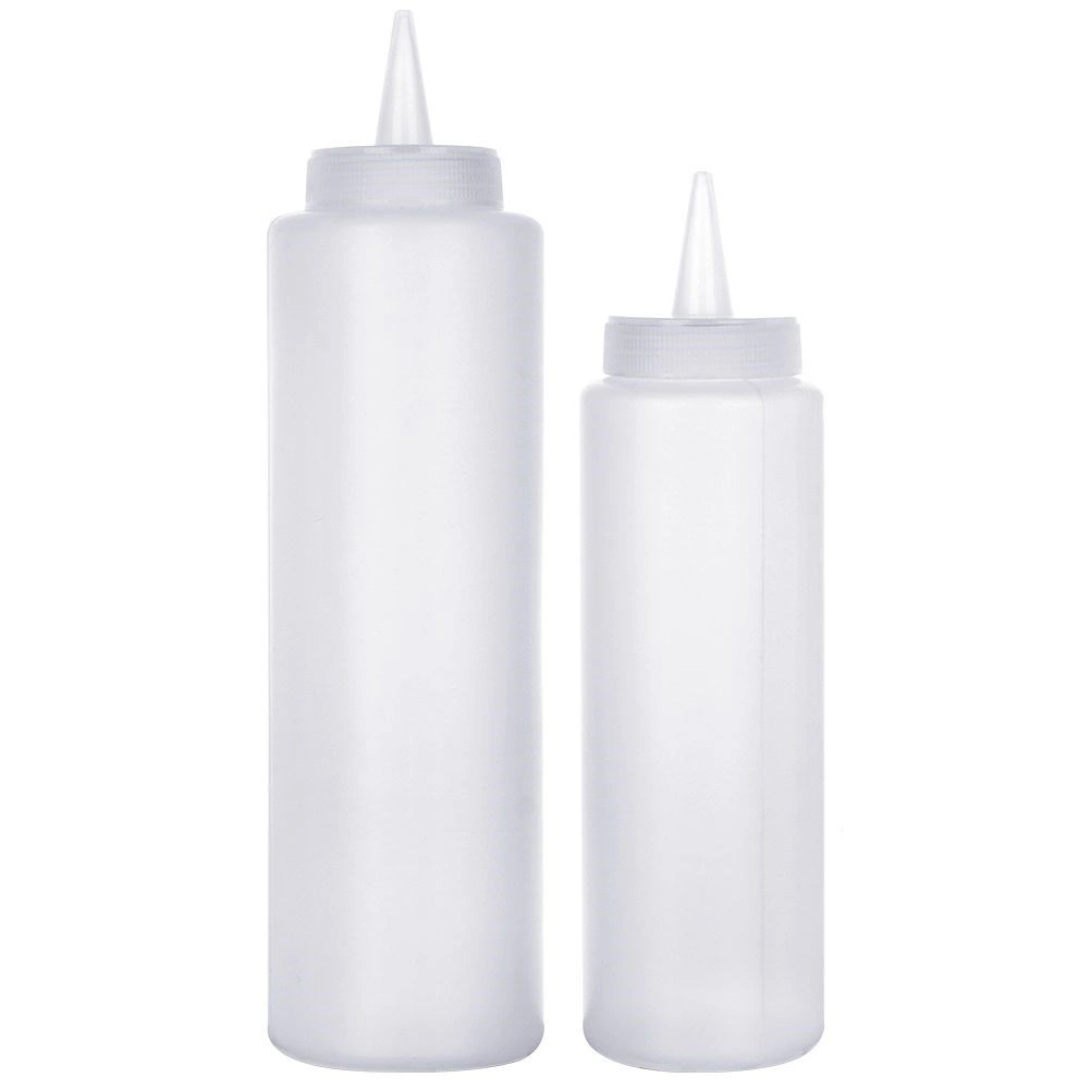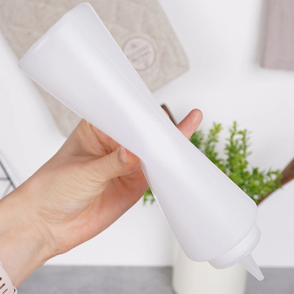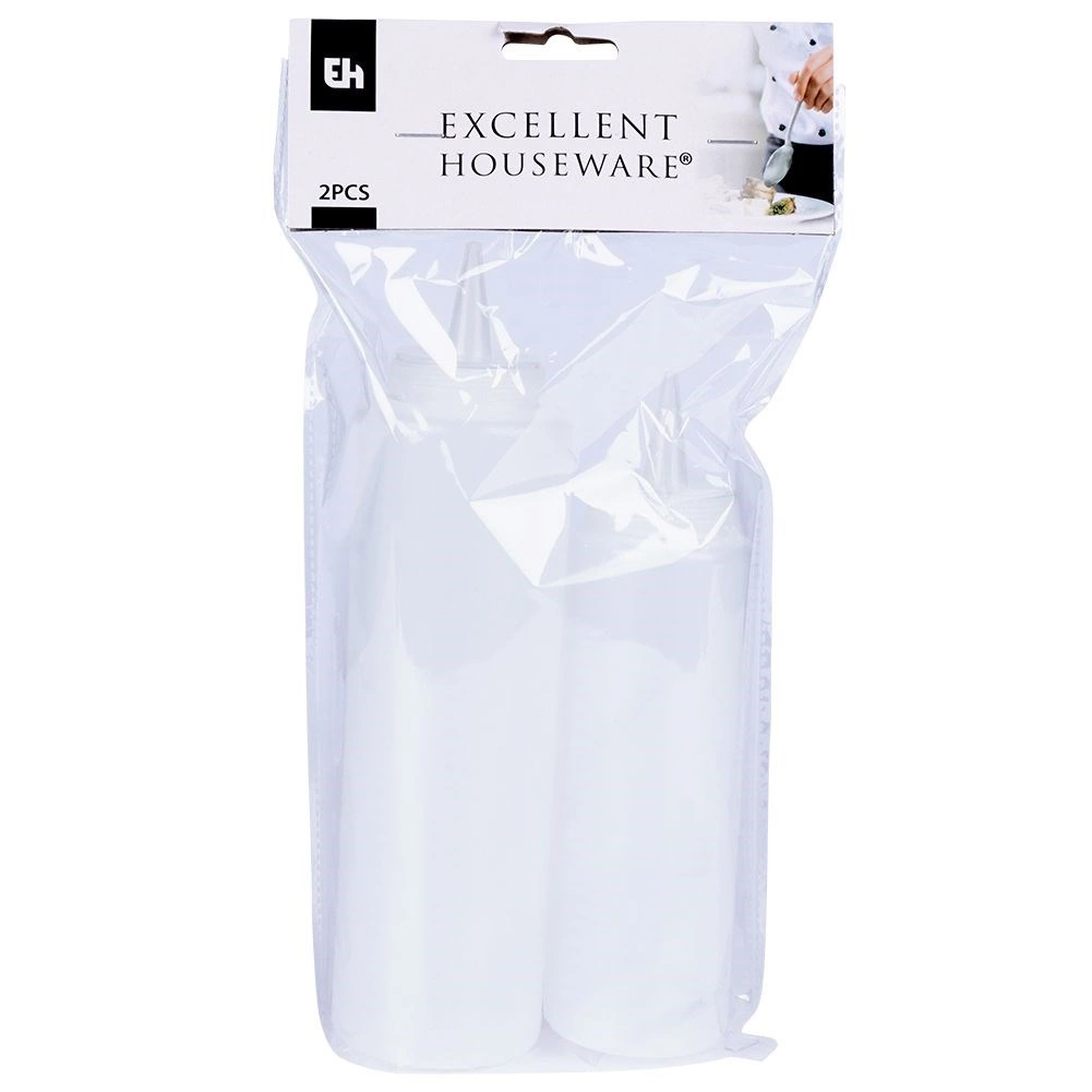 A nagyobb palack (500 ml, 21 × 6 cm) ideális szószokhoz és olajokhoz, a kisebb (250 ml, 18 × 5 cm) remekül használható torták, cupcake-ek és mézeskalácsok díszítéséhez. A palackok tartós műanyagból készülnek, könnyen tölthetők és tisztíthatók, mosogatógépben moshatók.