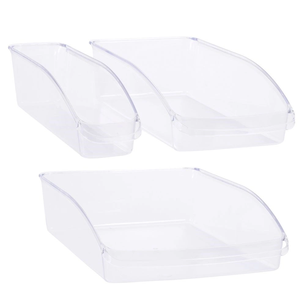 A 3 darabos hűtődoboz-készlet segít az élelmiszereket gondosan szortírozva és tovább frissen tartani. Az átlátszó kivitel azonnali rálátást biztosít a tartalomra, a nyitott elülső rész pedig lehetővé teszi a palackok, joghurtok vagy zöldségek gyors kivételét. A szervezők könnyűek, tartósak és egyszerűen tisztíthatók, így bármely háztartásban megállják a helyüket.