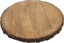 Stílusos mangófából készült, kb. 39 cm átmérőjű és 3 cm vastag deszka, amely ideális vágódeszkának és tálalóalátétnek is. Az egzotikus mangófa ellenáll a nedvességnek, nem deformálódik, nem szívja magába a szagokat és gyorsan szárad. A kérges, természetes megjelenés rusztikus bájt kölcsönöz az asztalnak, és kiválóan alkalmas falatok, uzsonnák és desszertek tálalására.
