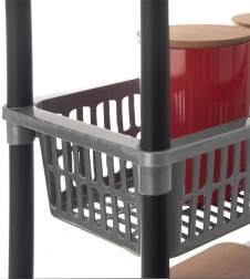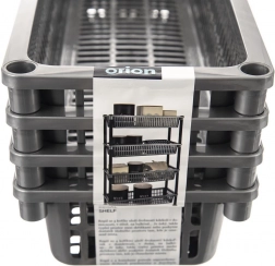 Praktikus, keskeny, 4 szintes polc tartós műanyagból, amely maximális tárolóhelyet kínál még kis fürdőszobában vagy konyhában is. Négy szellőző kosár szürke színben és fekete váz biztosítja a könnyű karbantartást, a nedvességállóságot és az egyszerű összeszerelést. Remek választás fürdőbe, konyhába, előszobába, erkélyre és műhelybe is.
