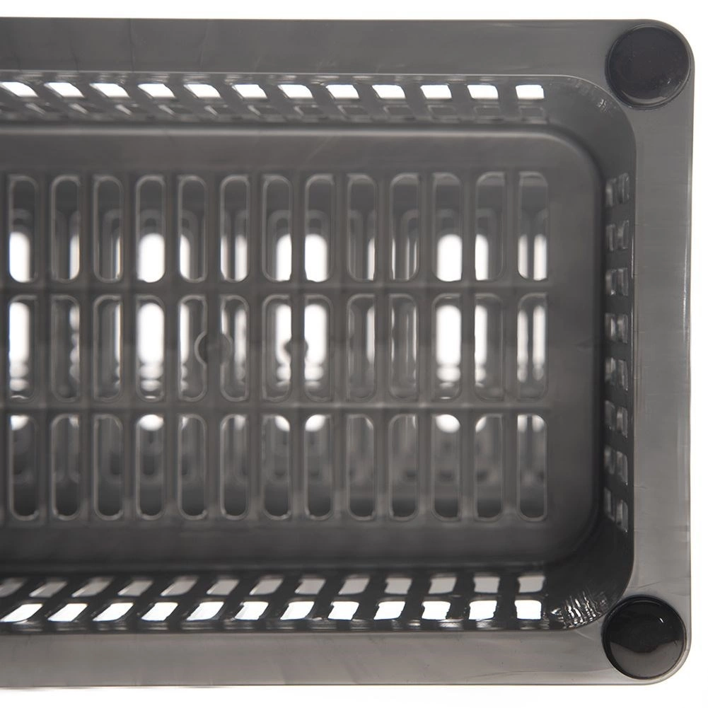 A GREY keskeny polc 83 × 19,5 × 50 cm-es méreteivel ideális oda, ahol kevés a hely, de sok a holmi. A négy kosár (kb. 50 × 20 × 10 cm) áttekinthető tárolást biztosít kozmetikumoknak, tisztítószereknek, élelmiszernek, zöldségnek vagy játékoknak. A kosarak szellőző oldalfalainak köszönhetően minden szellőzik, és jól látható a tartalom.