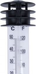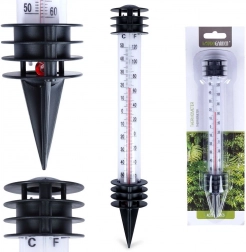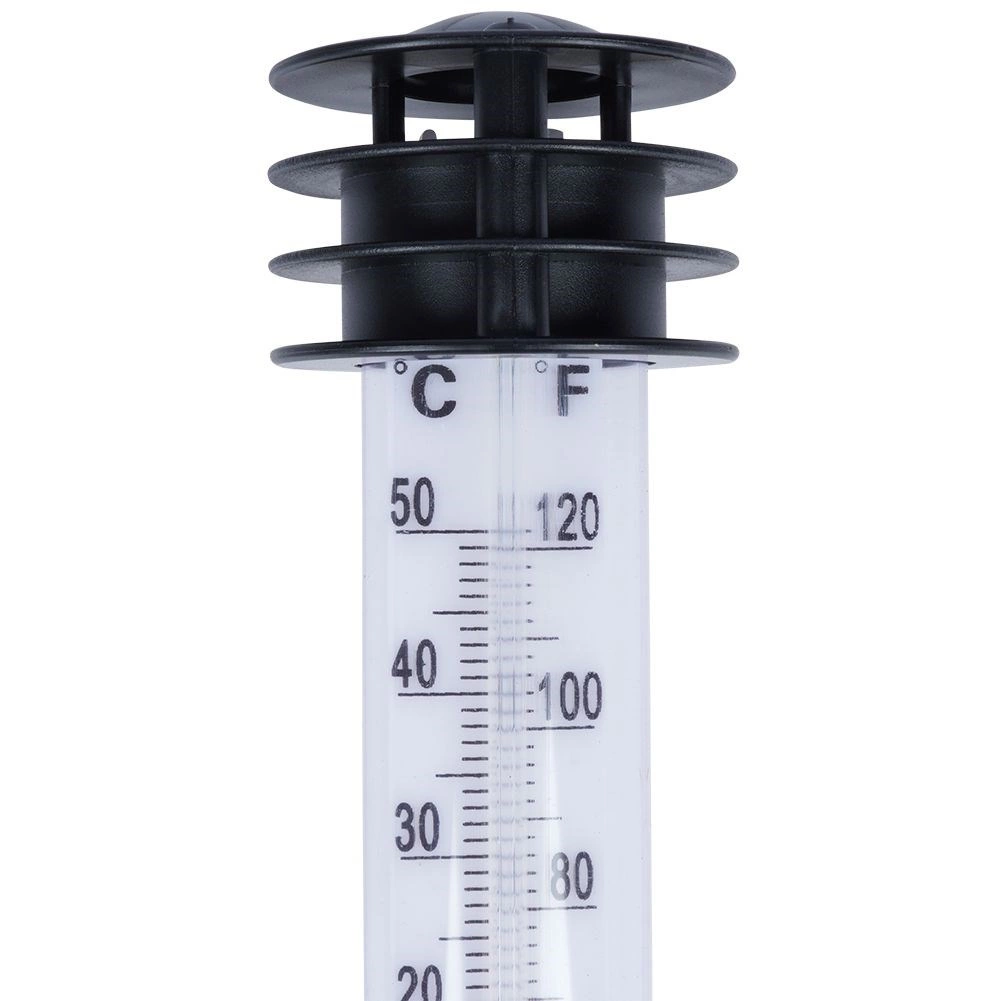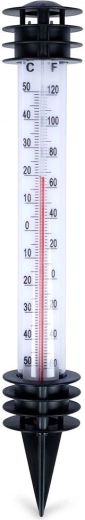 Ez a leszúrható kültéri hőmérő lehetővé teszi az aktuális hőmérséklet gyors ellenőrzését a kertben, erkélyen vagy az ágyásoknál. A kettős skála °C-ban (-50 – +50) és °F-ban (-60 – +120) a kontrasztos fehér háttérnek és a piros oszlopnak köszönhetően könnyen leolvasható. A védő lamellák és a kis tető segítik a pontosabb mérést a közvetlen napsütés csökkentésével.