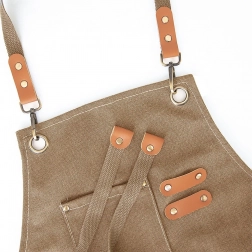 Az átgondolt kialakítás a háton keresztezett pántokkal egyenletesen osztja el a súlyt és biztonságosan a helyén tartja a kötényt. Az elülső dupla zseb és a kisebb rekesz elférnek benne a konyhai vagy munkához szükséges apróságok, míg a két hurok ideális ceruzához vagy eszközökhöz.