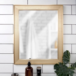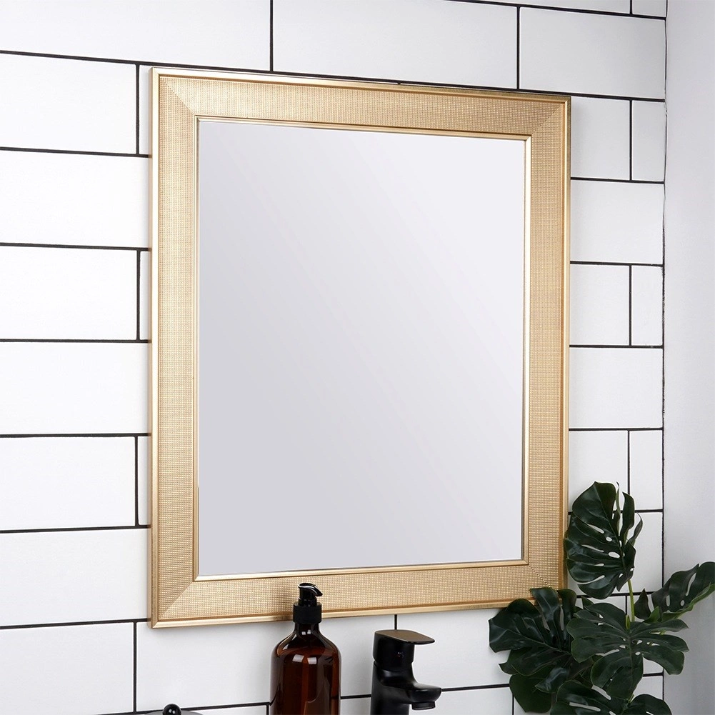 Elegáns falitükör arany keretben, népszerű téglalap alakú kivitelben, 49,5 × 59,5 cm méretben. Tiszta és éles tükrözést biztosít, függőlegesen és vízszintesen is felakasztható, és remekül illik klasszikus és modern enteriőrökbe is.