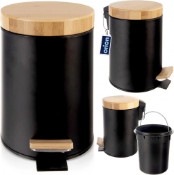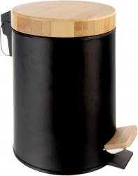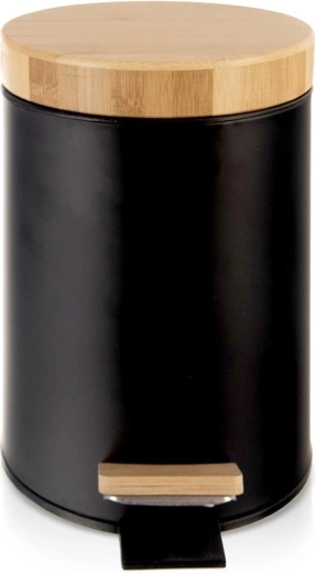 Kompakt, 3 literes szemetes elegáns fekete színben bambusz fedéllel és pedállal – ideális fürdőszobába, irodába vagy hálószobába. A kézérintés nélküli, pedállal működő nyitás maximálisan higiénikus, a kivehető belső tartály megkönnyíti az ürítést és tisztítást, a matt fém és a bambusz részletek pedig remekül illenek a modern enteriőrbe.