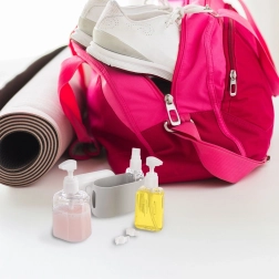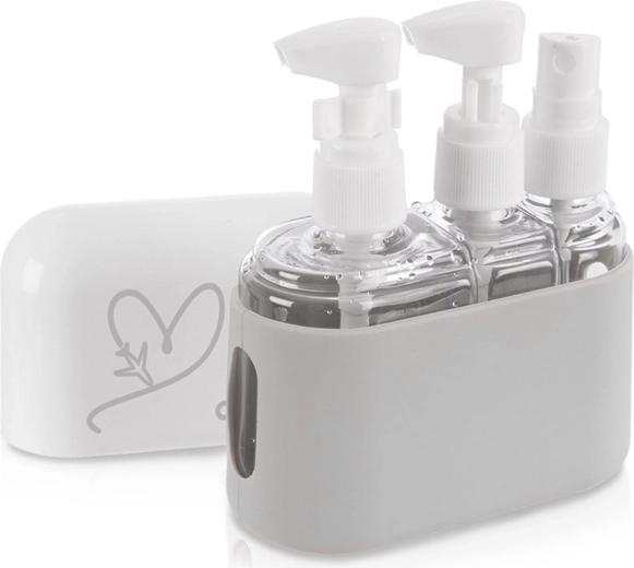 Ez a kompakt utazóflakon-készlet ideális repülőútra, hétvégi kiruccanáshoz, kempingezéshez és mindennapi munkába vagy iskolába járáshoz. Az átlátszó tartálytest gyors tartalomellenőrzést biztosít, a fehér kupakok szorosan zárnak és megakadályozzák a kifolyást. A tartós tok szilikon alja stabilan a helyén tartja a flakonokat, és védi őket a sérülésektől és a szennyeződésektől.