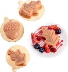 Hat forma levél és makk alakban, éles kontúrokkal és sima felülettel, látványos mini desszerteket készít, amelyek első pillantásra lenyűgöznek.