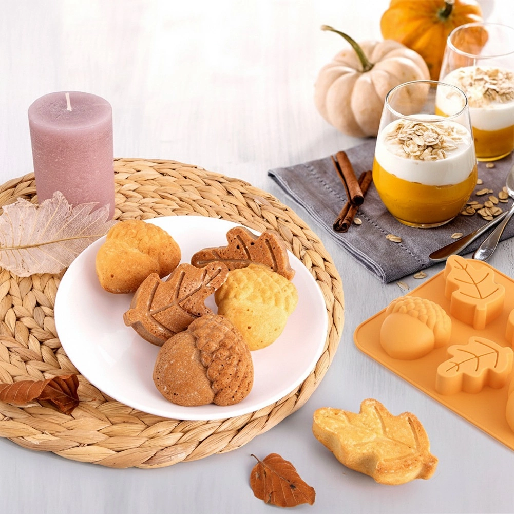 Készíts lenyűgöző szezonális finomságokat az őszi szilikon formával. A hat mély mélyedés levél- és makkrészletekkel látványos kekszeket vagy mini tortácskákat varázsol gyerekzsúrokra és hétköznapi nassoláshoz is. A rugalmas, tapadásmentes szilikon megkönnyíti a töltést és a kifordítást, nem veszi át a szagokat, és nem deformálódik.