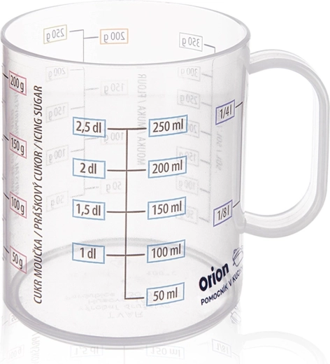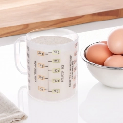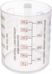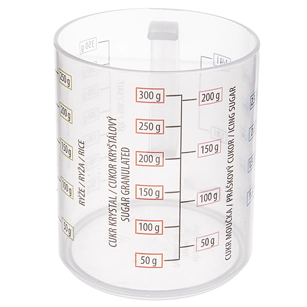 Tegye egyszerűbbé a főzést és a sütést a kompakt, bögréhez hasonló mérőedénnyel. Az ötszörös skálázásnak köszönhetően gyorsan és pontosan mérheti az alapanyagok térfogatát és tömegét. A mérőedény tartós, könnyű műanyagból készült, amely élelmiszerrel érintkezve biztonságos és ellenáll a mechanikai sérüléseknek.