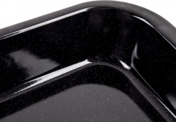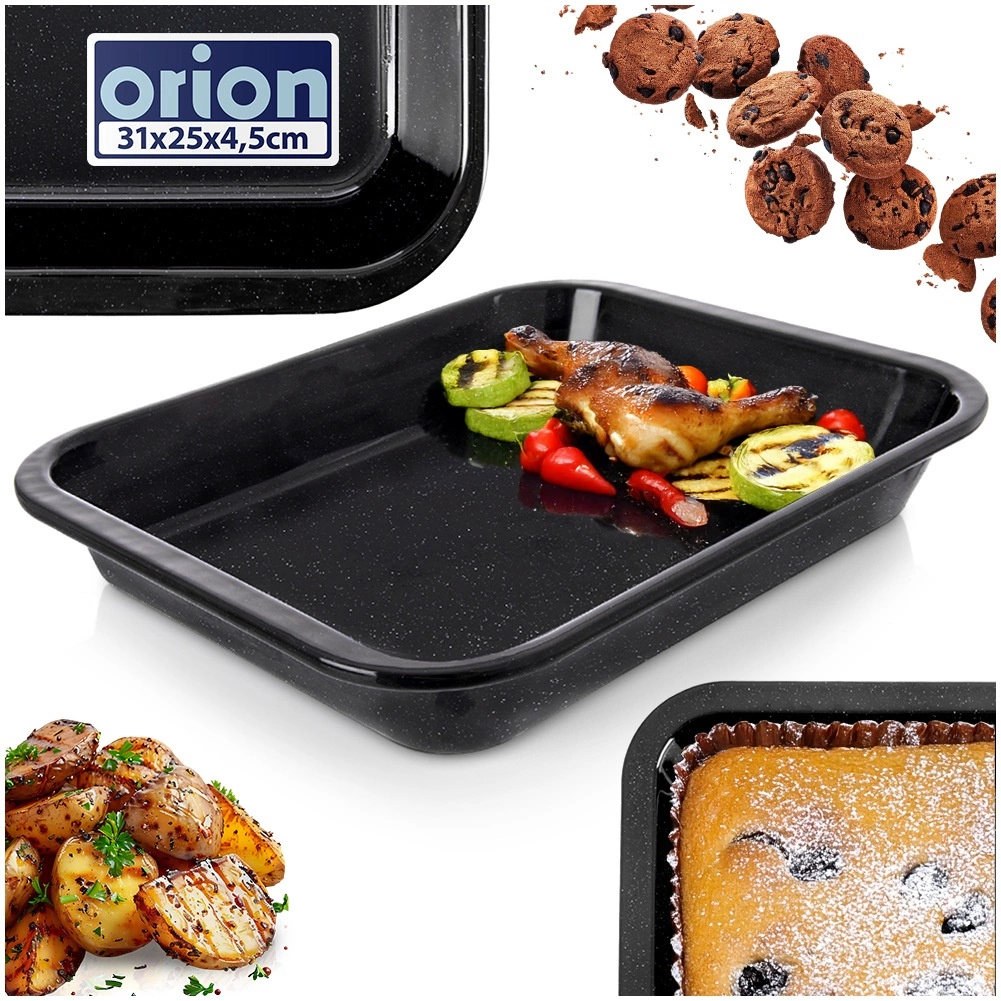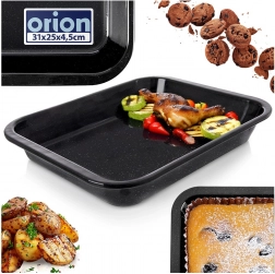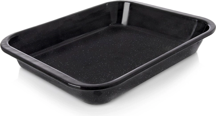 Praktikus, téglalap alakú tepsi zománcozott acélból, 31 × 25 × 4,5 cm méretben a mindennapi sütéshez. Egyenletes hőelosztást, karcállóságot, könnyű tisztíthatóságot és magas peremet kínál szaftos sültekhez, rakott ételekhez és édes desszertekhez. Gáz- és elektromos sütőben is használható, és mosogatógépben mosható.