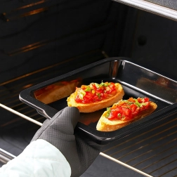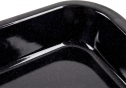 A zománcozott tepsi nélkülözhetetlen segítőtárs minden konyhában. A tartós acél, a sima, fényes zománcréteggel kiválóan bírja a magas hőmérsékletet, ellenáll a karcolásoknak, és egyben könnyen tisztítható. Remek választás húsokhoz, rakott ételekhez, zöldségekhez, burgonyához, pizzához, valamint tortákhoz, kekszekhez és péksütményekhez.