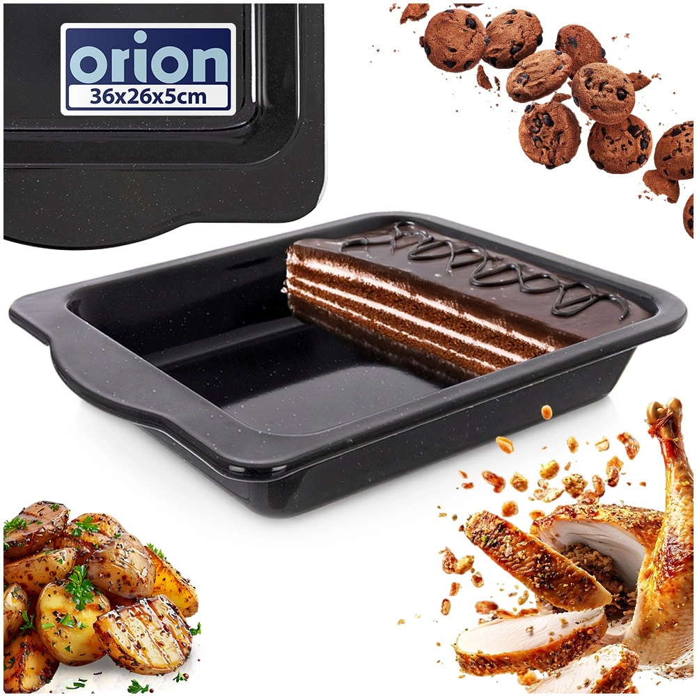 Praktikus, zománcozott tepsi 36 × 26 × 5 cm (külső) és 29,5 × 23 × 5 cm (belső) mérettel, ideális mindennapi édes és sós ételek sütéséhez. A tartós acél zománcozott felülettel hosszú élettartamot, könnyű tisztítást és jobb ételkioldást biztosít. A magas perem biztonságos sütést nyújt félig folyékony ételeknél is kifolyás nélkül, a tepsi elektromos és gázsütőben, valamint mosogatógépben is használható.