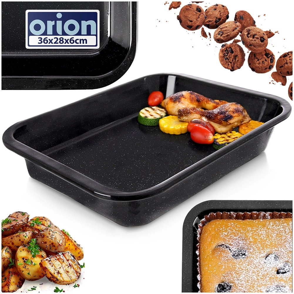 Az ORION zománcozott tepsi megbízható segítőtárs minden konyhában. A masszív acél és a minőségi zománcfelület kiváló hőeloszlást biztosít, ellenáll a magas hőmérsékletnek, és könnyen karbantartható. A magas oldalfalak megakadályozzák a szaft kifolyását és megkönnyítik a kezelést.