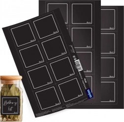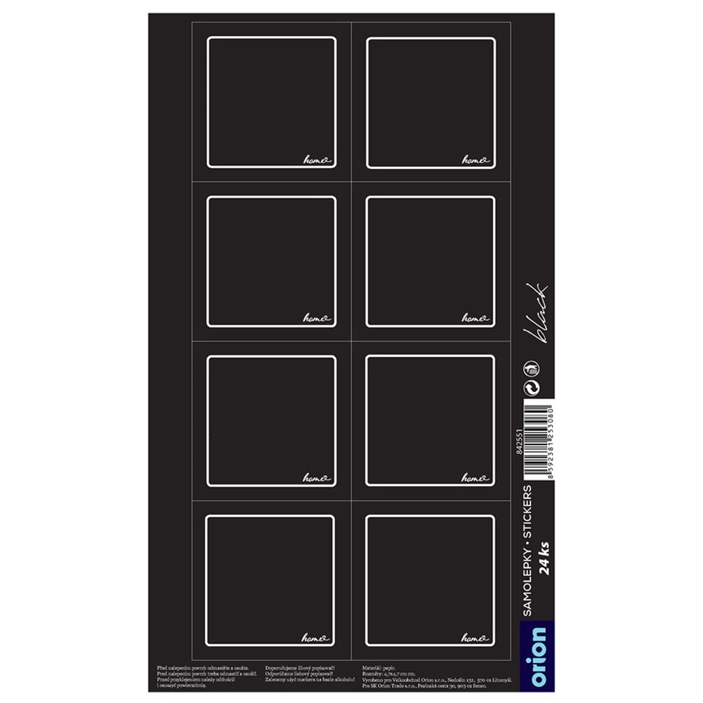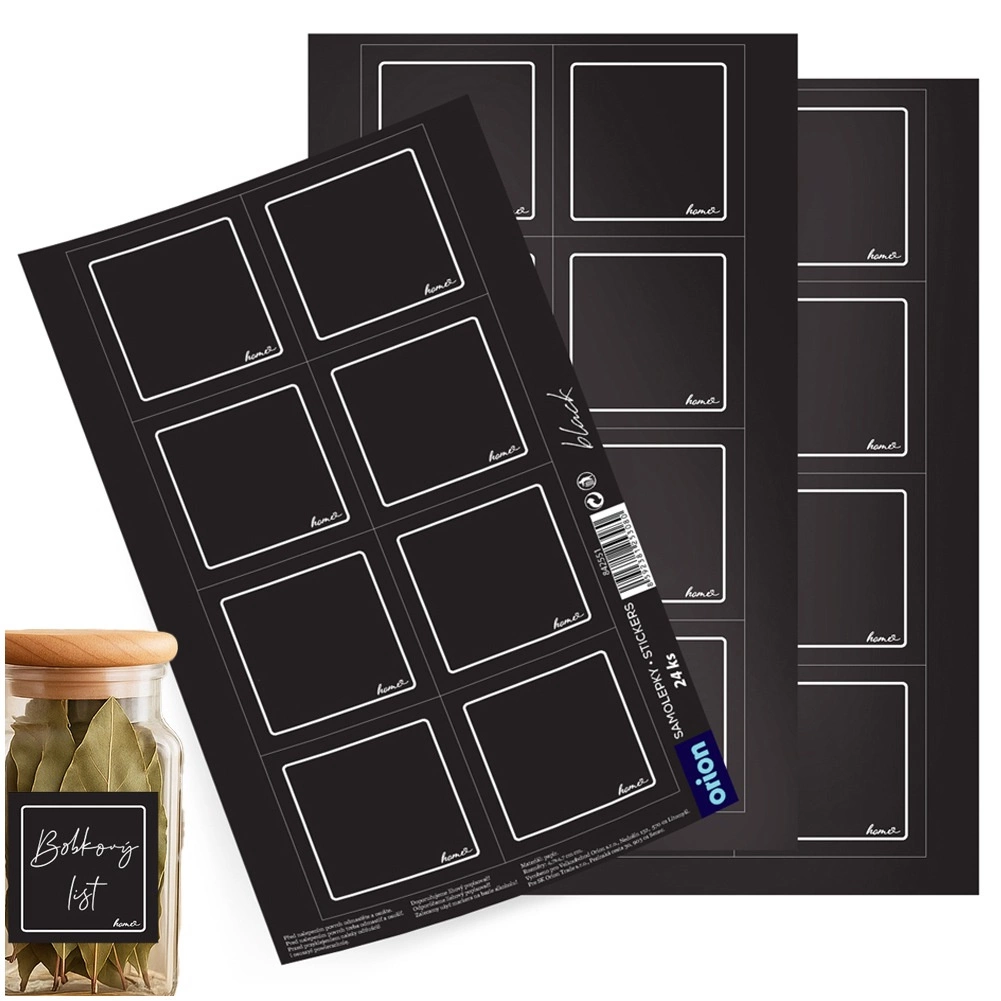 Praktikus 24 darab öntapadós címke elegáns fekete színben üvegek, palackok és tárolódobozok áttekinthető jelöléséhez. Minden címke mérete 4,7 × 4,7 cm, laminált papírból készül, és a öntapadó rétegnek köszönhetően nem igényel ragasztót. A saját felirat számára kijelölt hely olvasahatóságot és rendszert biztosít a spájzban és a konyhában. Eredeti ORION márkatermék.