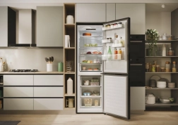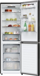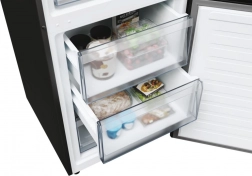 Stílusos kombinált, alul fagyasztós hűtőszekrény, amely tágas és áttekinthető elrendezést, takarékos működést és modern LED világítást kínál. A állítható üvegpolcoknak, a áttetsző fiókoknak és a praktikus ajtórekeszeknek köszönhetően könnyedén elrendezheti a friss élelmiszereket és italokat. Az alsó fagyasztó különálló fiókjai hosszú távú tárolást biztosítanak a fagyasztott alapanyagoknak.