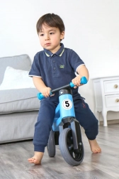 Tartós, egészségre ártalmatlan műanyag szerkezete sima illesztésekkel a legkisebbek számára is biztonságos. A korlátozott villafordulás megakadályozza a kormány túlfordulását, a szélesített markolatvégek védik a kicsik kezeit. Az alacsony, 1,9 kg-os tömeg megkönnyíti a hordozást és a kezelhetőséget.