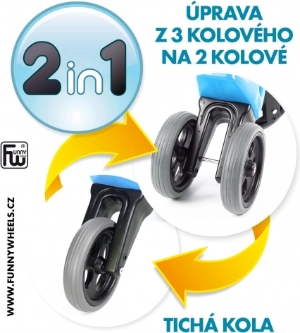 A könnyű és tartós Funny Wheels Rider Sport 2az1-ben futóbicikli együtt nő a gyerekkel 18 hónapos kortól. Pillanatok alatt háromkerekűből kétkerekűvé alakítható, kétféle ülésmagassággal, csendes, csúszásmentes gumiabroncsokkal, kormányütközővel és biztonságos markolatokkal a kis motorosok számára.