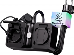 Az elosztót kültéri használatra tervezték – a IP44 védettségű, nem éghető ( V0 osztály) anyagok és a beépített túlterhelés‑ és túlmelegedés‑védelem növelik a biztonságot. Hasznos funkció a fogyasztáskövetés minden aljzathoz külön, beleértve az erkély napelemek termelésének monitorozását is (bal oldali aljzat).