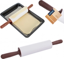 A barna, strapabíró műanyag markolatok csúszásmentes és ergonomikus kialakításúak, így a sodrófa biztosan és kényelmesen tartható. A szilikon -40 °C-tól +220 °C-ig hőálló, ami a mindennapi sütésnél és professzionális használatnál is előnyös.
