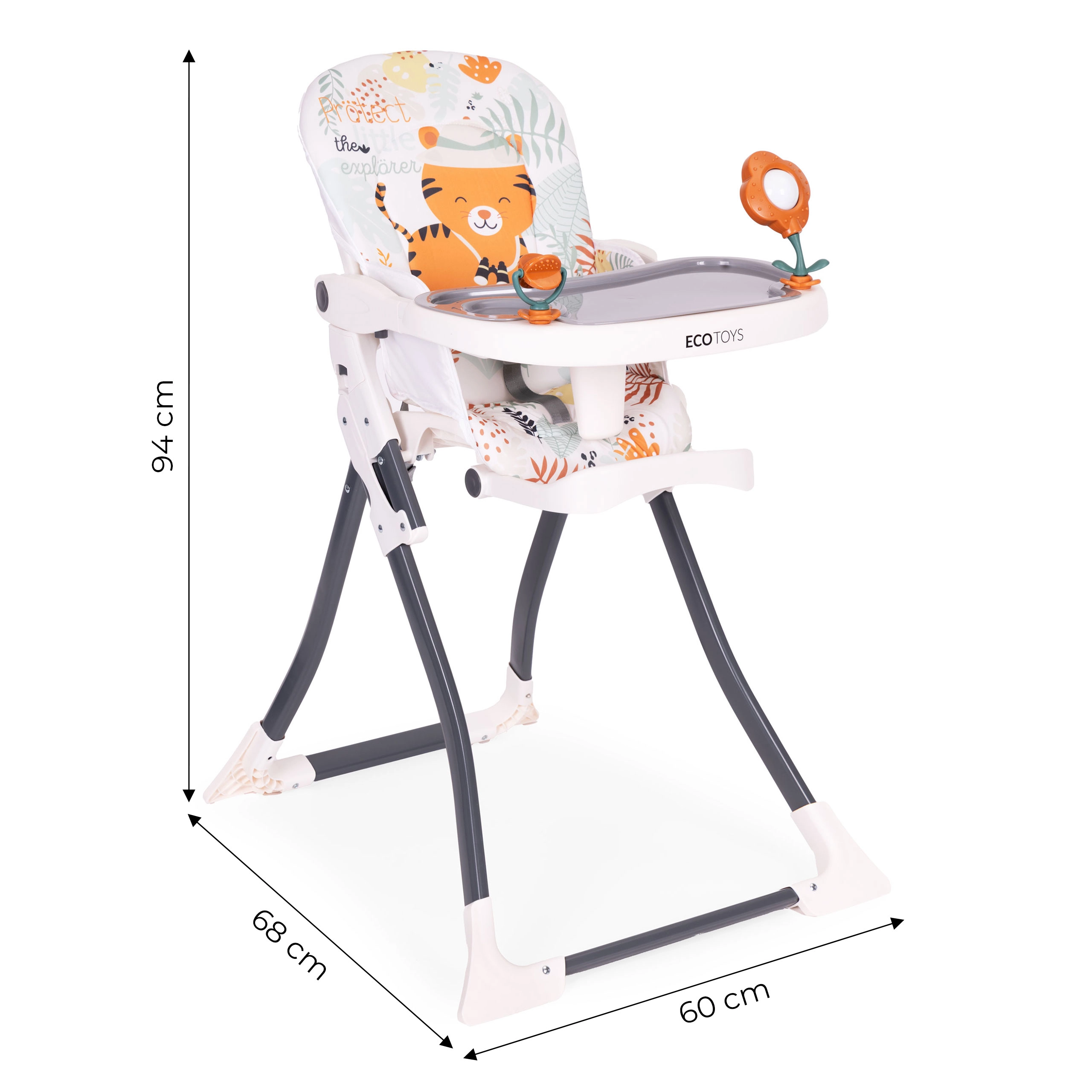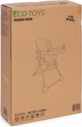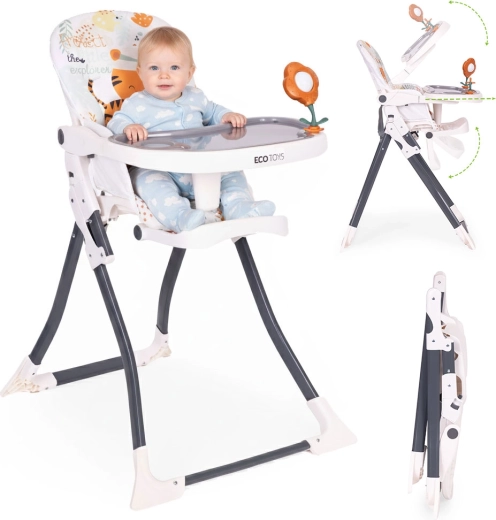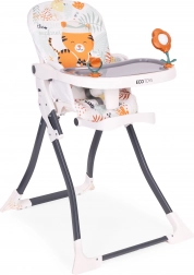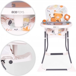 Az ECOTOYS etetőszék megkönnyíti a közös étkezéseket és az első önálló próbálkozásokat. A széles tálca elegendő helyet biztosít a tányérnak és a játéknak, szenzoros ingerlésnek a beépített játékok révén. Az eltávolítható huzat és a dupla tálca lecsatolható felső réteggel gyors tisztítást garantál.