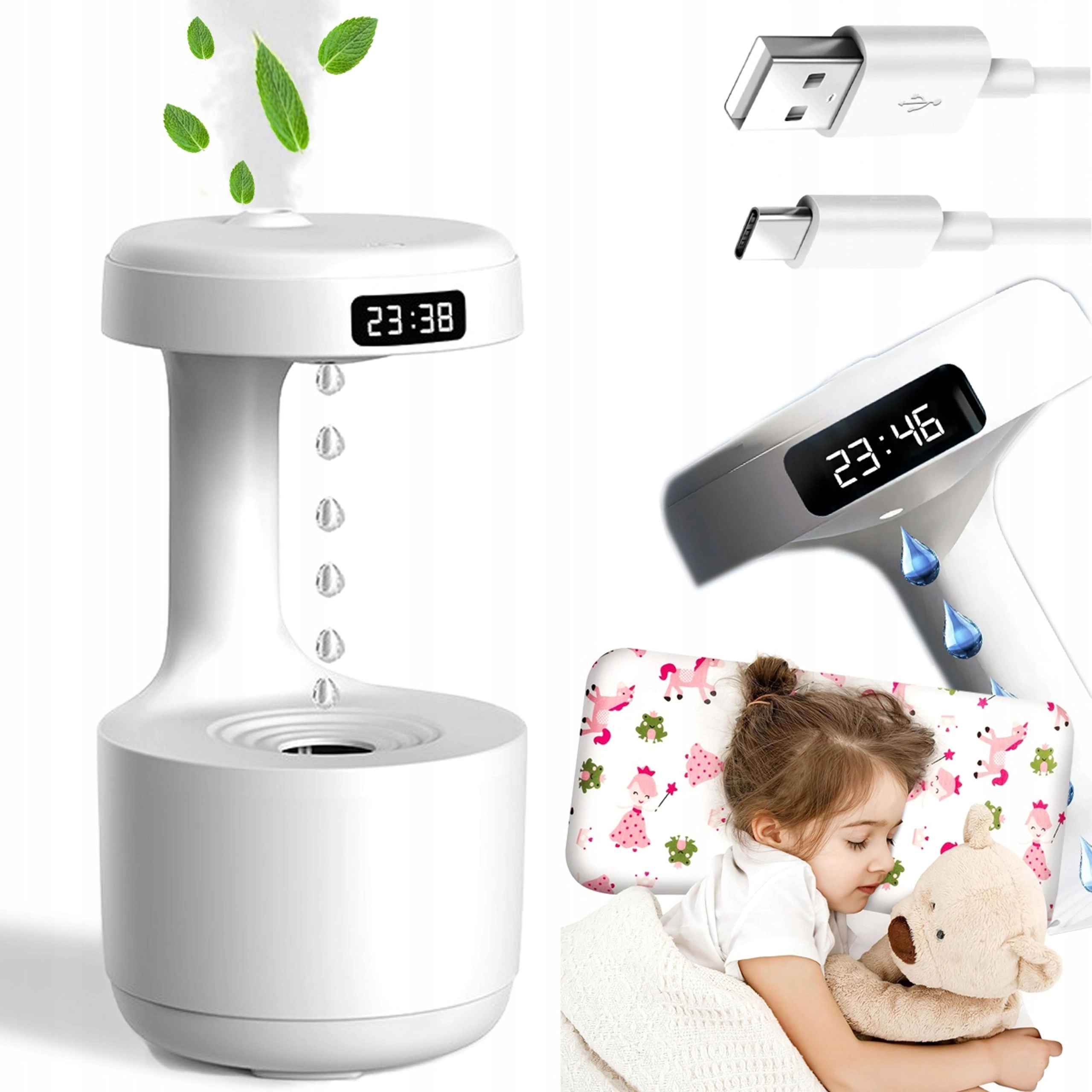 Az antigravitációs párásító látványos „felfelé szálló cseppek” effektust kínál, miközben hatékonyan növeli a beltéri páratartalmat. Fejlett technológiájának köszönhetően finom párát hoz létre, amely segít mérsékelni a száraz levegőt, a nyálkahártya-irritációt, és megkönnyíti a légzést nappal és éjszaka egyaránt. Az integrált LED kijelző mutatja az időt és az állapotot, míg a csendes működés nem zavarja az alvást.