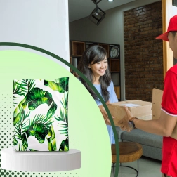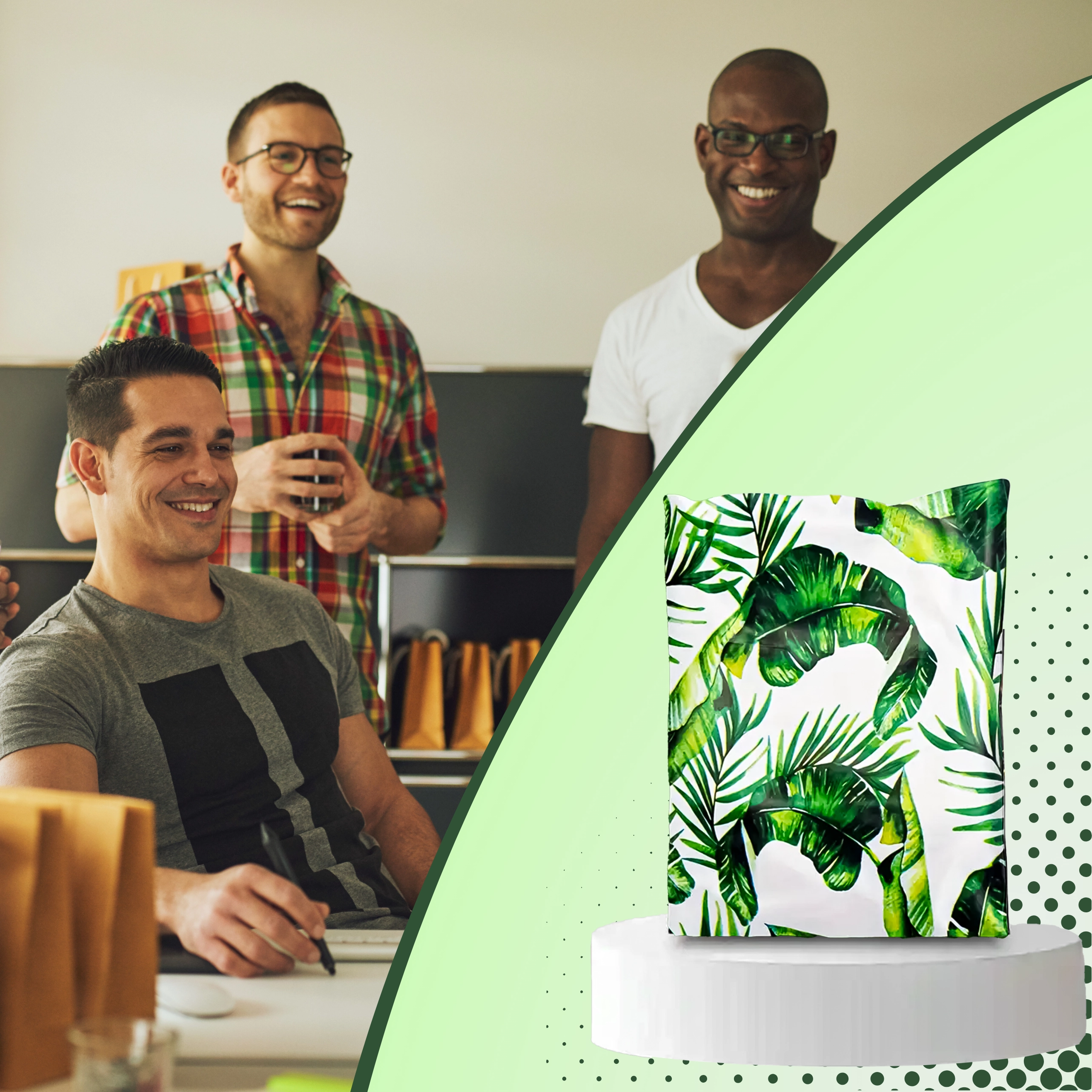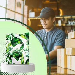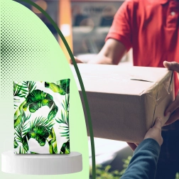 - Figyelemfelkeltő dizájn: a trópusi minta karakteres, könnyen megjegyezhető megjelenést ad a küldeményeknek.