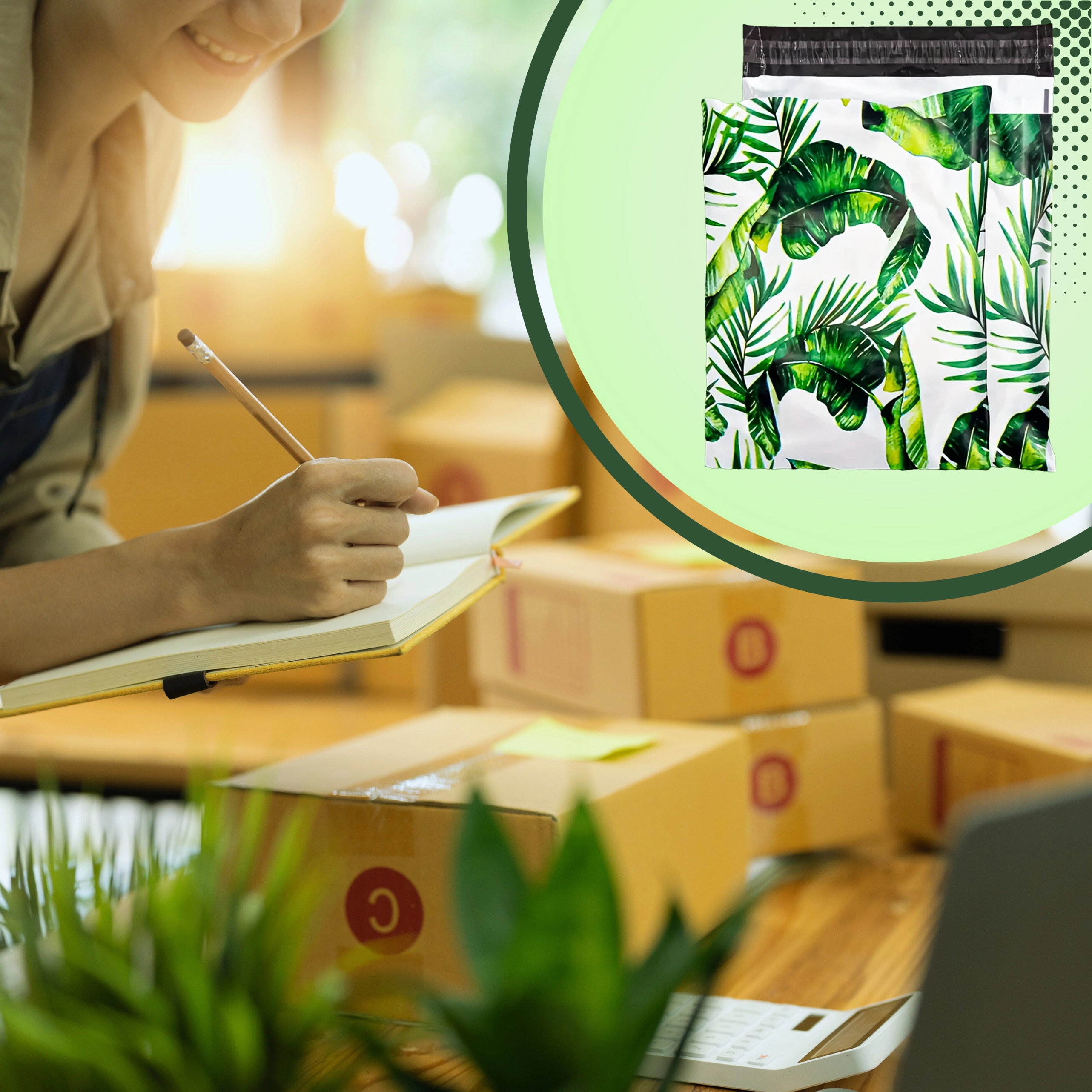 Megbízható és mutatós csomagolást keres webáruházához vagy otthoni küldeményekhez? Ezek a zöld levélmintás műanyag poliborítékok ötvözik a tartósságot, az alacsony tömeget és a professzionális megjelenést. A 255 × 370 mm-es méret ideális textíliákhoz, kiegészítőkhöz, nyomtatványokhoz és más könnyebb termékekhez.
