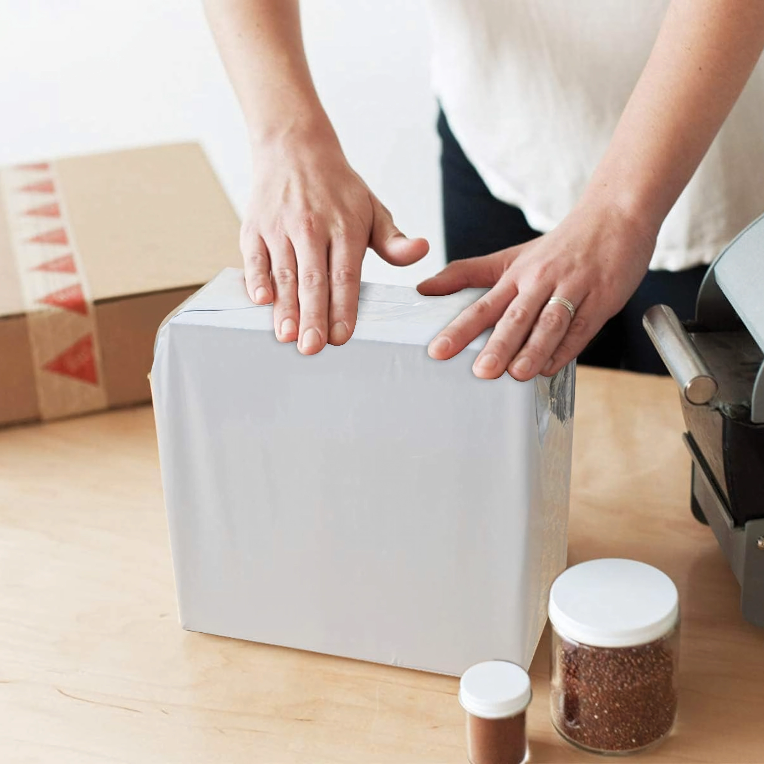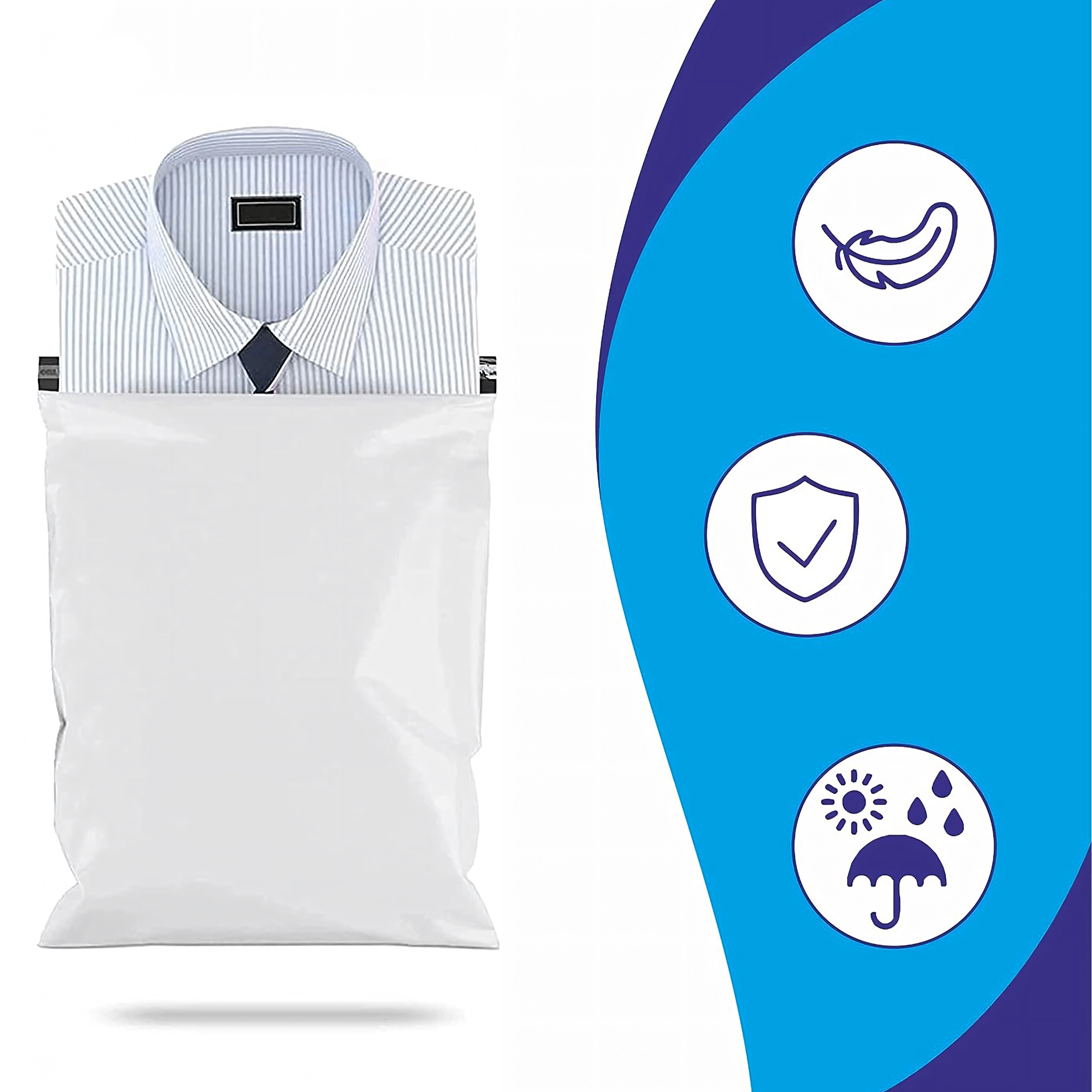 Az átlátszatlan anyag óvja a vásárlók magánszféráját, míg a többrétegű műanyag kialakítás ellenáll a nedvességnek és a raktári, illetve kézbesítési folyamatok során szokásos kezelésnek. Kiváló ruházat, kiegészítők, katalógusok, textíliák és más puha, nem törékeny termékek feladásához.