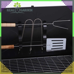 A szellőzőnyílásoknak köszönhetően a szén égése hatékonyabb, így az ételek gyorsabban és egyenletesebben készülnek el. Az oldalakon praktikus fogantyúk segítik a könnyű hordozást. A csomagban alap tartozékokat is kap – lapátot, fogót és nyársat, hogy azonnal kezdhessen grillezni.
